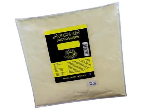 Aroma Powder jest skoncentrowanym aromatyzowanym środkiem zapachowym, który można dodawać do jakiejkolwiek wędkarskiej przynęty czy zanęty. Bardzo prosto można z jego wykorzystaniem wzbogacić jakąkolwiek mieszankę pokarmową, mieszankę przynęt lub method mix. Można także go dobrze wykorzystać przy domowej produkcji kulek, past powlekających lub przy aromatyzowaniu w domu gotowanej kukurydzy.