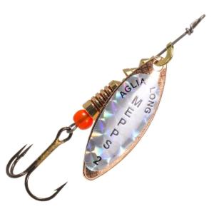 Hologram w tęczowosrebrzystym, łuskowatym ubarwieniu naklejony na paletkę Aglia Long – i oto powstała błystka udatnie naśladująca połyskującą rybkę. Podczas wirowania wypisz-wymaluj ukleja, kiełbik, strzebelka. Na wodach stojących, szczególnie w starszych zbiornikach zaporowych oraz kanałach żeglugowych, błystki tego typu są zabójcze na sandacze. Od większych modeli nie stronią także sumy i duże szczupaki, mniejsze atakowane są przez okonie. Na łowiskach specjalnych o charakterze stawowym Aglia Long Rainbo jest niezwykle skuteczna na pstrągi tęczowe. W rzekach nizinnych na małe wielkości można się spodziewać brań kleni, jazi, okoni. “Trójka” jest niezawodna na duże bolenie. W krainie pstrąga i lipienia, szczególnie podczas pochmurnej pogody oraz zmąceń, refleksy hologramu wyciągają z ostoi nawet niemrawe ryby.