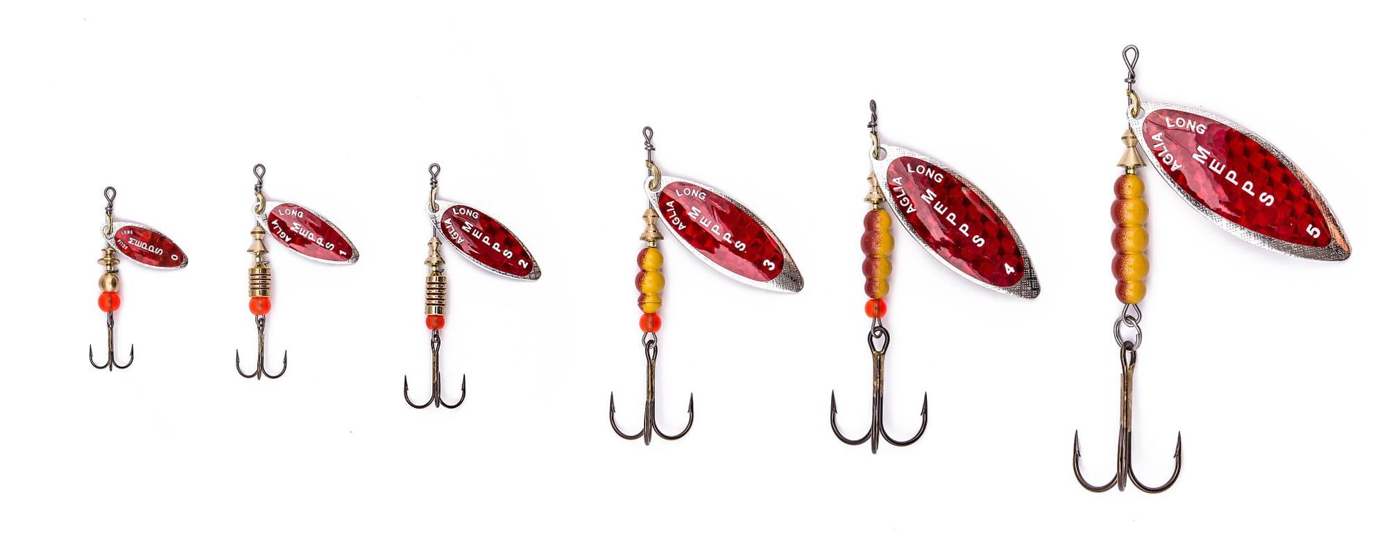 Na paletkę Aglia Long naklejony jest czerwony, łuskowany hologram. Tym razem efekt błystki ekscentrycznej – niczego istniejącego nie naśladuje, a jednak prowokuje, niekiedy bardziej aniżeli jakiekolwiek naturalne wzory. Są takie dni, kiedy czerwony, skrzący się tęczowo hologram wabi niemal wszystkie drapieżniki – od wzdręgi i okonia z jeziorowej płycizny, klenia i jazia sprzed rzecznej ostrogi, poprzez trolingowego szczupaka z głębokiej toni, po głowacicę z Popradu czy Dunajca