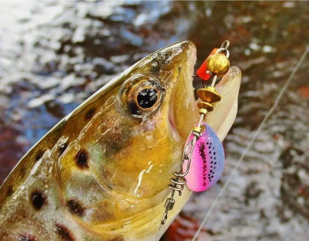 Błystka ta produkowana jest w dwóch kolorach – na paletce srebrnej jako rainbo trout, na złotej jako brown trout.