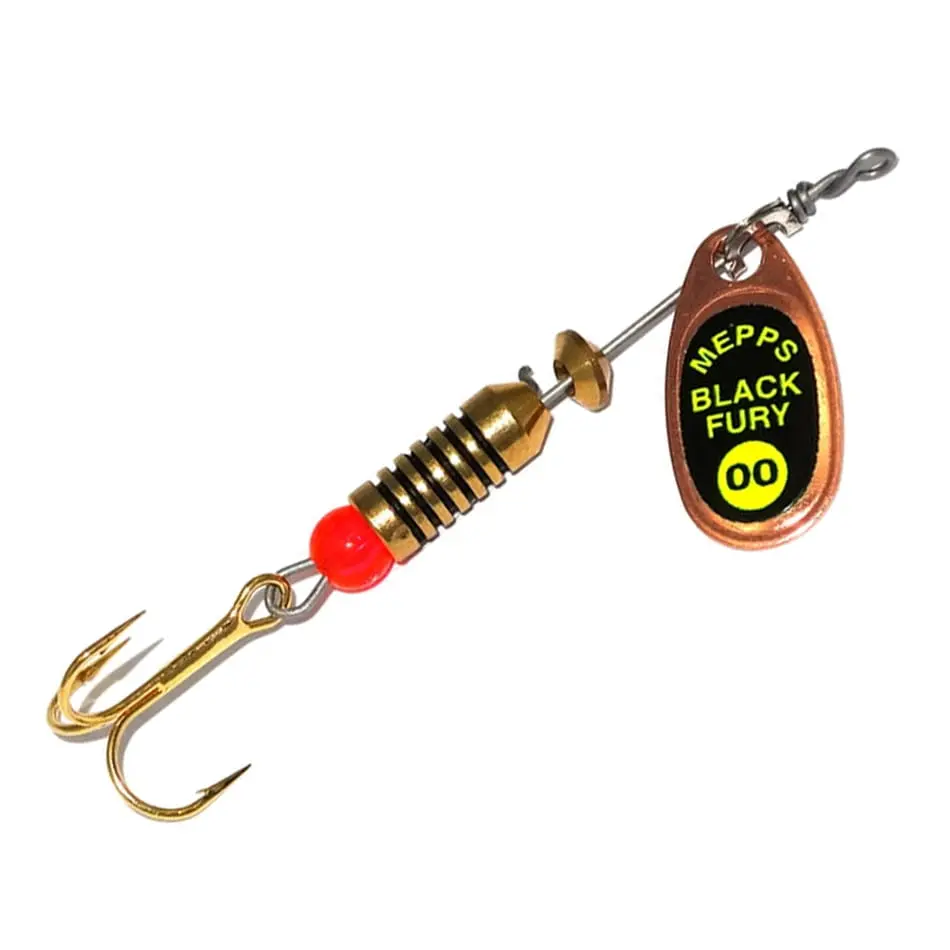 O Meppsach Black Fury można chyba napisać książkę. To ulubiona obrotówka wielkiej rzeszy wędkarzy na całym świecie, a także ulubiona przez większość ryb drapieżnych i paradrapieżników. Znakomicie biorą na BF okonie, klenie, jazie, szczupaki, pstrągi, brzany, trocie, łososie – a więc niemal wszystkie ryby łowione na spinning. Na najmniejsze biorą także lipienie. Błystka kręci się świetnie zarówno prowadzona z prądem, jak i pod prąd. Jej podstawą jest paletka typu Comet, a więc nawet na mocnych prądach nie ma tendencji do wyskakiwania z wody.