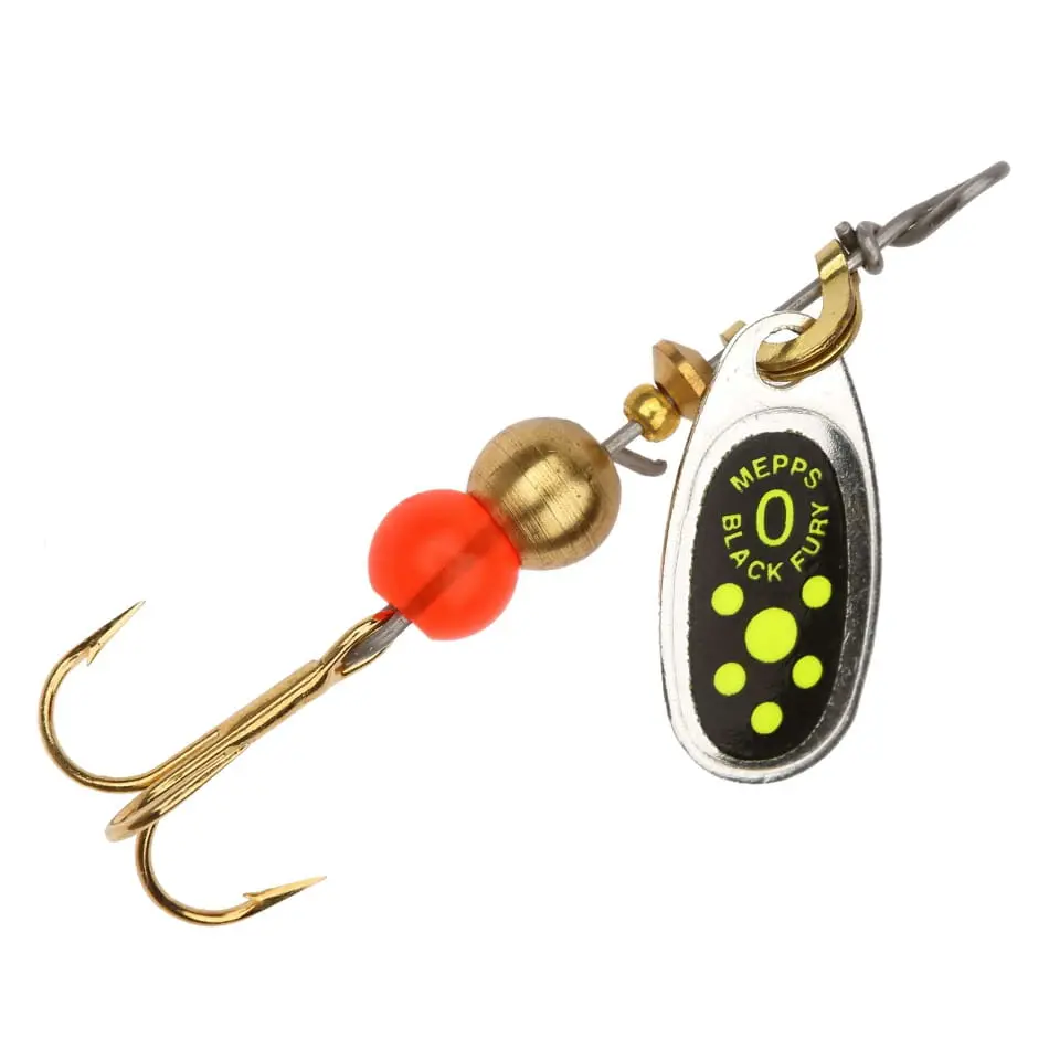 O Meppsach Black Fury można chyba napisać książkę. To ulubiona obrotówka wielkiej rzeszy wędkarzy na całym świecie, a także ulubiona przez większość ryb drapieżnych i paradrapieżników. Znakomicie biorą na BF okonie, klenie, jazie, szczupaki, pstrągi, brzany, trocie, łososie – a więc niemal wszystkie ryby łowione na spinning. Na najmniejsze biorą także lipienie. Błystka kręci się świetnie zarówno prowadzona z prądem, jak i pod prąd. Jej podstawą jest paletka typu Comet, a więc nawet na mocnych prądach nie ma tendencji do wyskakiwania z wody.