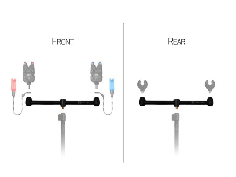 Delphin SIMPLEBUZZ to uniwersalny buzz bar na dwie wędki. Dzięki standardowemu gwintowi pasuje do każdej sztycy Delphin, a także innych sztyc dostępnych na rynku. Doskonale sprawdza się w połączeniu z modelem Simple Stick. Wszystkie gwinty są osadzone w solidnym plastiku, dzięki czemu nie ma ryzyka uszkodzenia. Sama poprzeczka wykonana jest z aluminium z eleganckim czarnym wykończeniem.