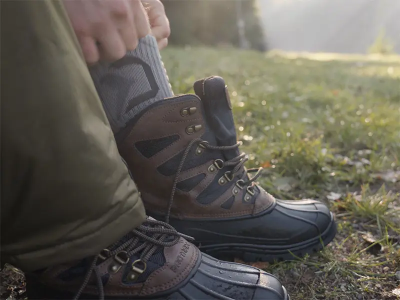 Górna część buta powstała z połączenia skóry syntetycznej i siatki, co utrzymuje ciepło nawet przy bardzo niskich temperaturach. Dodatkową ochronę przed zimnem stanowi wnętrze wyłożone polarem i miękkim sztucznym futrem. Dzięki temu buty zachowują wygodę także w ekstremalnych warunkach, takich jak wędkowanie pod lodem, gdy podeszwa ma bezpośredni kontakt z lodem.