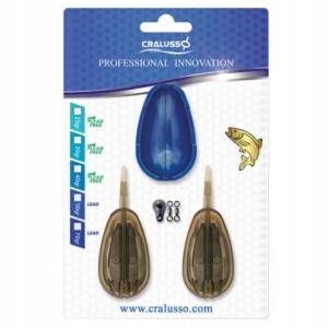 Zestaw zawierający dwa koszyczki Sensitive oraz foremkę Mould Shell. Nowy koszyczek od firmy Cralusso, zaprojektowany tak, by żeberka znajdowały się wzdłuż korpusu. To zapobiega wypadaniu zanęty oraz i zaczepianiu się przynęty. Nowy koszyczek ma przesunięty środek ciężkości do przodu przez co rzuty będą dalsze i celniejsze. System zastosowany w koszyczku pozwala na wymianę gramatury bez przecinania żyłki. Foremka Mould Shell to idealna foremka do ubijania zanęty w podajnikach. Kompatybilna z większością podajników. Rewelacyjny system otwierania foremki nie odklei przynęty od podajnika. Opakowanie 2 szt. + foremka