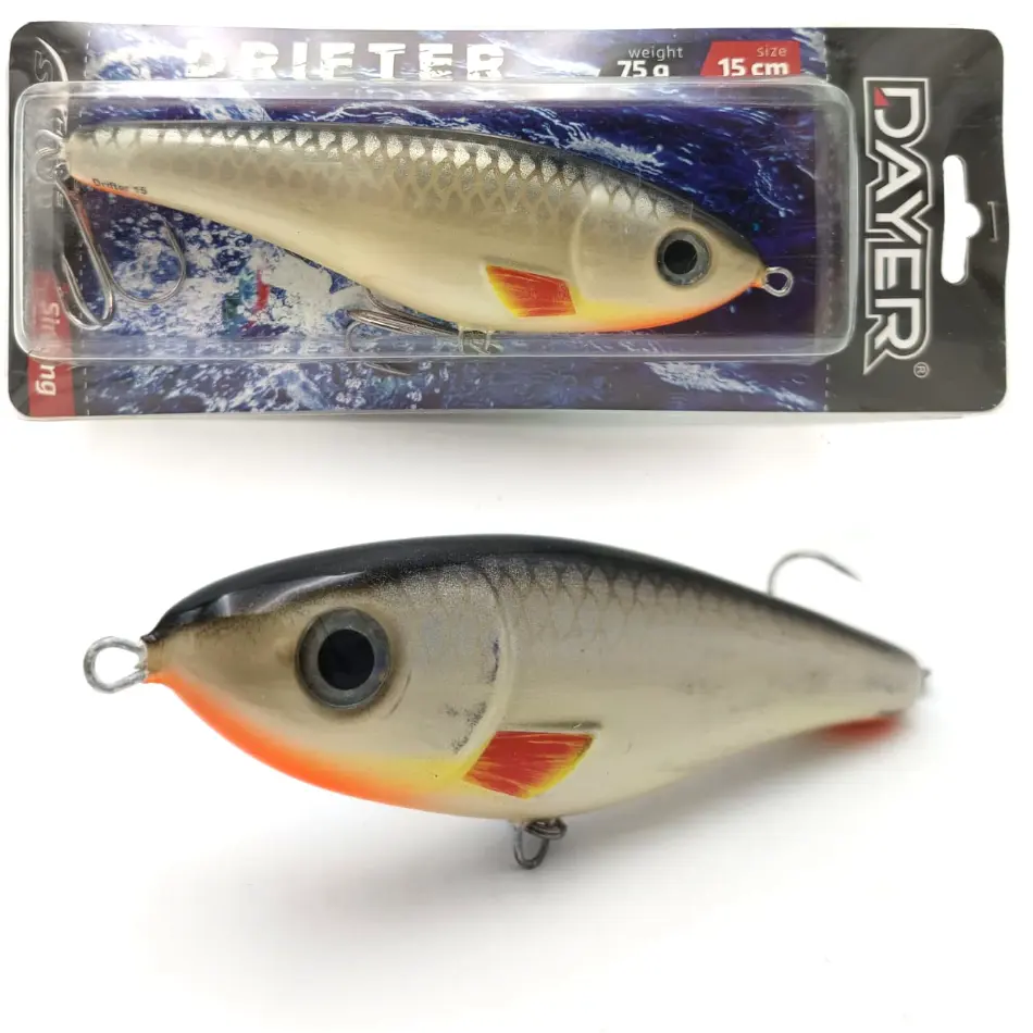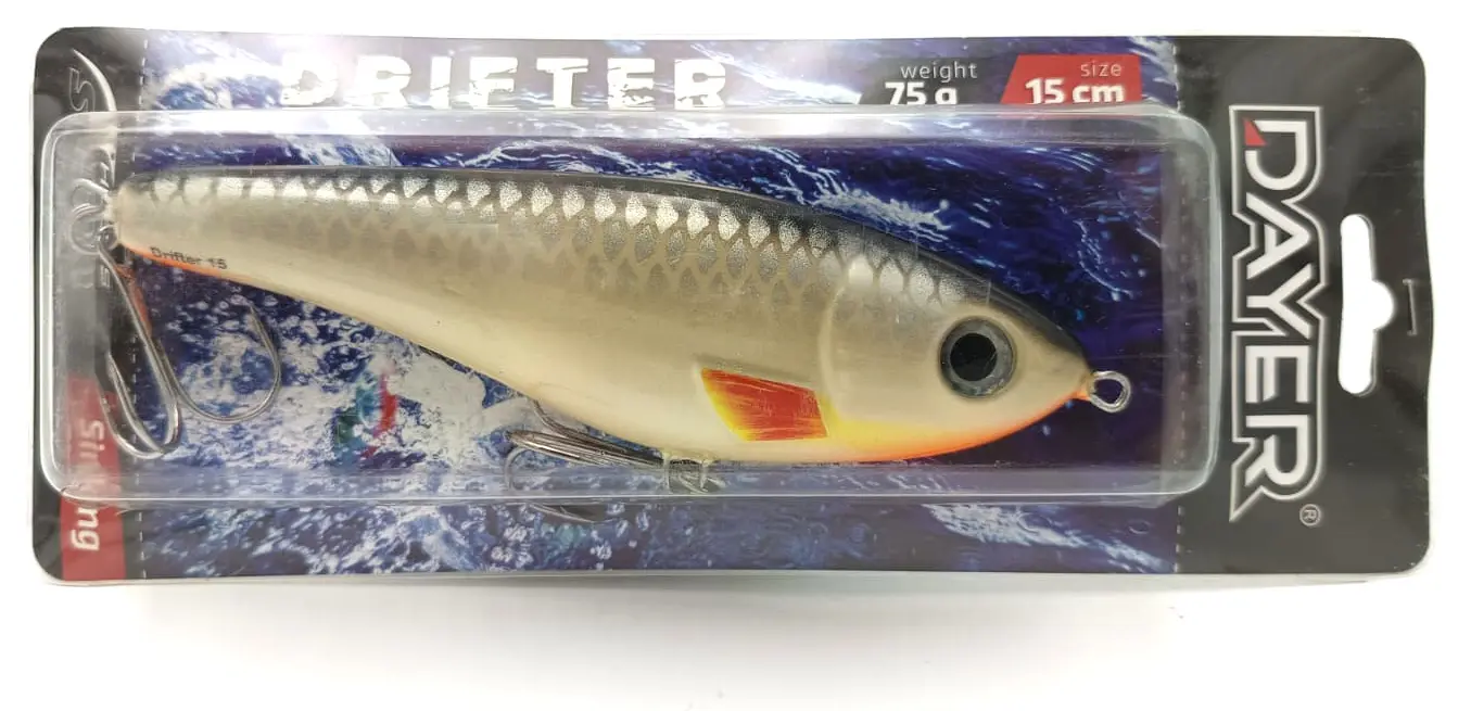 Dlaczego Dayer Drifter? Duże drapieżniki bardzo chętnie polują na ofiary, których pochwycenie nie wymaga od nich zbyt wiele wysiłku. Energia potrzebna do wykonania ataku musi być jak najmniejsza. Wielki szczupak, ogromny okoń, czy leciwy snadacz: takie ryby nie będą uganiały się bez końca za zdrową, pełną wigoru rybką. Np. nie bez kozery mówi się, że szczupak to doktor naszych wód. Ta ryba, tak jak i inne drapieżniki, najchętniej pożre ofiarę w słabej kondycji, a bezwarunkowo zaatakuje rybę konającą. Jerk Dayer został skonstruowanay w taki sposób, aby jak najwierniej odwzorować naturalny pokarm, który za chwilę ma kopnąć w przysłowiowy kalendarz, Oprócz klasycznego ruchu na boki jerk Drifter w ostatnie fazie ruchu wykłada się na brzuch, co jest sygnałem dlka drapieżnika do natychmiastowego ataku.