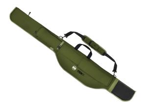 Pokrowiec jest w pełni wyściełany miękką wyściółką o grubości 6 mm na wszystkich ścianach, łącznie z przegrodą. Dzięki temu nie ma niebezpieczeństwa wzajemnego uszkodzenia 2 wędek podczas transportu. Obie wewnętrzne komory na wędki można przymocować za pomocą rzepu na górze.