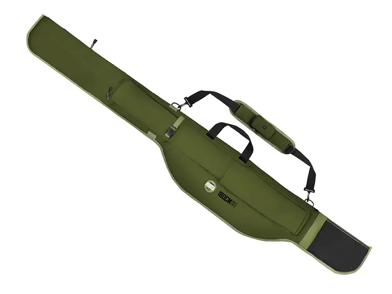 Z boku pokrowca znajduje się długa kieszeń zapinana na zamek, która posłuży np. do transportu podbieraka. Ma jednak jeszcze jedną kieszeń z paskiem mocującym, dzięki czemu zapewnia większą przestrzeń i zmienność. Kolejna świetna cecha znajduje się na pasku na ramię, gdzie umieszczono małą kieszonkę, w której można przechowywać drobiazgi.
