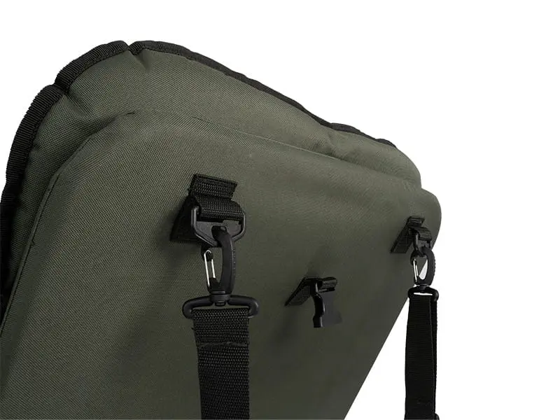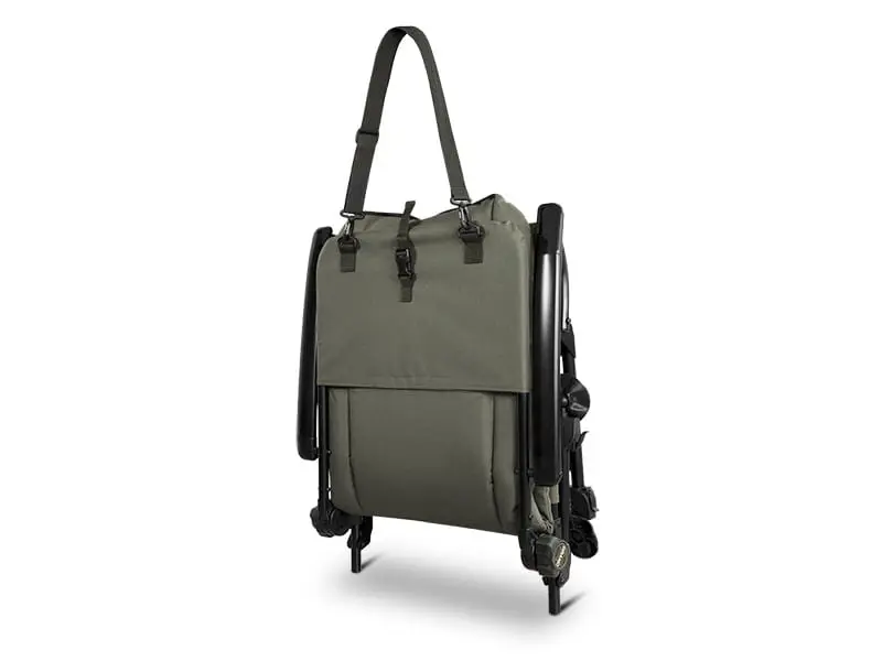 Solidna spawana konstrukcja stalowa zapewnia wytrzymałość, a skośny rozstaw nóg zapewnia dużą stabilność, szczególnie docenianą przez większych karpiarzy. Mimo solidnej konstrukcji, krzesło jest stosunkowo lekkie. Dla ułatwienia transportu krzesło wyposażone jest w odpinany pasek, który można przewiesić przez ramię, uwalniając ręce do noszenia innego sprzętu wędkarskiego. Dodatkowo krzesło wyposażone jest w plastikowy klips, który zabezpiecza krzesło przed rozłożeniem.