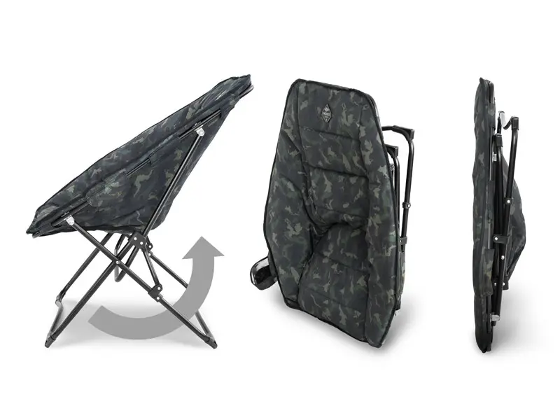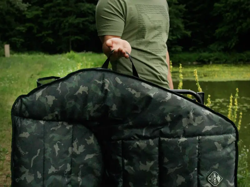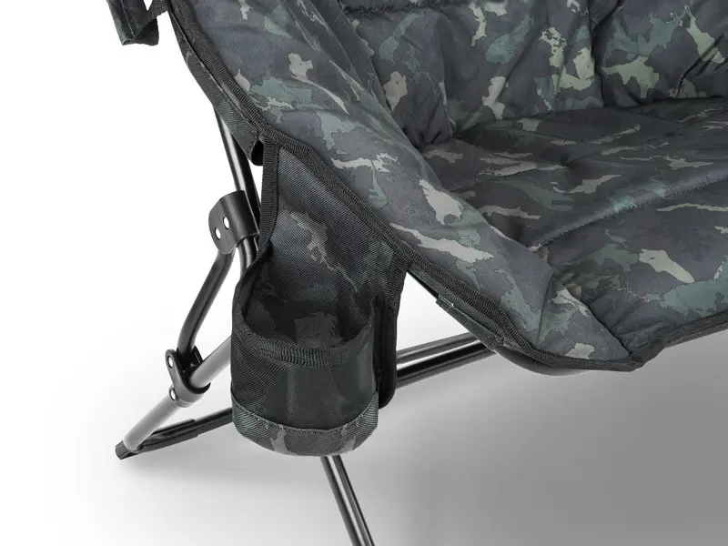 Maksymalną wygodę gwarantuje wyściełane miękkim wypełnieniem siedzisko, zarówno w centralnej części, jak i na obrzeżach. Powierzchnia wykonana jest z trwałej tkaniny 600D, z naniesionym oryginalnym, opatentowanym kamuflażem BANX, co nadaje fotelowi unikalny wygląd i zapewnia trwałość na lata.