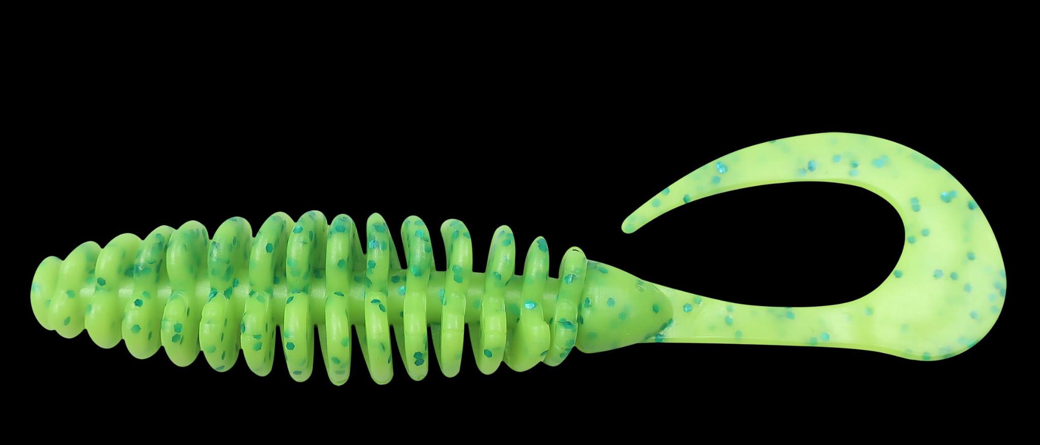 Przynęta posiada karbowany i żebrowany korpus. Dzięki tej odmiennej budowie przynęta bywa zaskakująco skuteczna podczas łowienia sandaczy. Twistery wykonane są z miękkiej, a jednocześnie trwałej gumy, dzięki czemu mamy przynętę pracującą oraz trwałą i odporną na uszkodzenia. Stanowią doskonałą ofertę dla wszystkich łowców sandaczy oraz okoni.