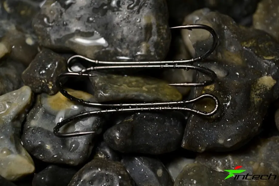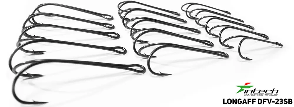Intech Tournament Longaff DFV-23SB - to najwyższej jakości haczyki podwójne, opracowane wspólnie przez firmę Intech ze światowym liderem w branży, japońską firmą Vanfook. Grot na haczyku jest kuty chemicznie - dzięki czemu ma wyjątkową ostrość i niezawodność. Hak wykonany jest z wysokomodułowej, sprężystej stali, posiada wydłużony czubek oraz ochronną powłokę PTFE, która niezawodnie chroni przed korozją i poprawia właściwości penetracyjne. Prawidłowy kształt zagięcia pozwala na pewne trzymanie ryby na haczyku. Szeroka gama haczyków - odpowiednia do uzbrajania każdej przynęty od 2,5 do 6 cali.