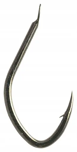 Haczyk wykonany ze stali węglowej, pokryty brązem. Szerokie kolanko i krótki trzonek kwalifikuje go do łowienia na większych odległościach (odległościówka, metoda gruntowa). Po zacięciu ryby model ten umozliwia nam pewny hol. Posiada długi grot ostrzony chemicznie.