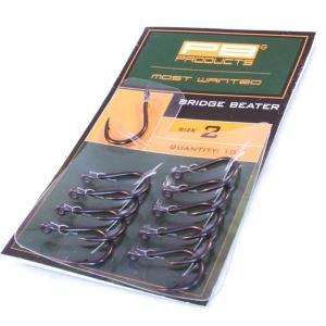 Haki Karpiowe Bridge Beater z mikro zadziorem. Krótki trzonek, gruby i mocny drut odgięty delikatnie na zewnątrz, zagięte ostrze oraz proste oczko - to cechy charakterystyczne haków PB Products Bridge Beater. Tego typu haki bardzo mocno trzymają rybę podczas holu i nadają się zarówno do przynęt pływających jak i tonących. Wszystkie haki PB Products pokryte są czarną matowa powłoką.