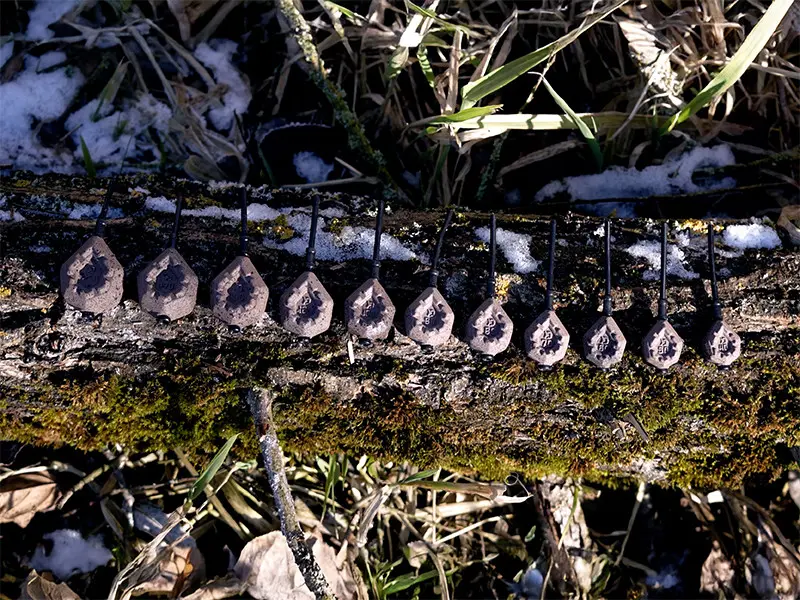 Powierzchnia jest pokryta naturalnymi odcieniami brązu z czarnymi plamkami, co zapewnia doskonały kamuflaż na dnie. Dodatkowo, podniesione grzbiety na głównych powierzchniach zapobiegają przesuwaniu się ciężarka po dnie.
