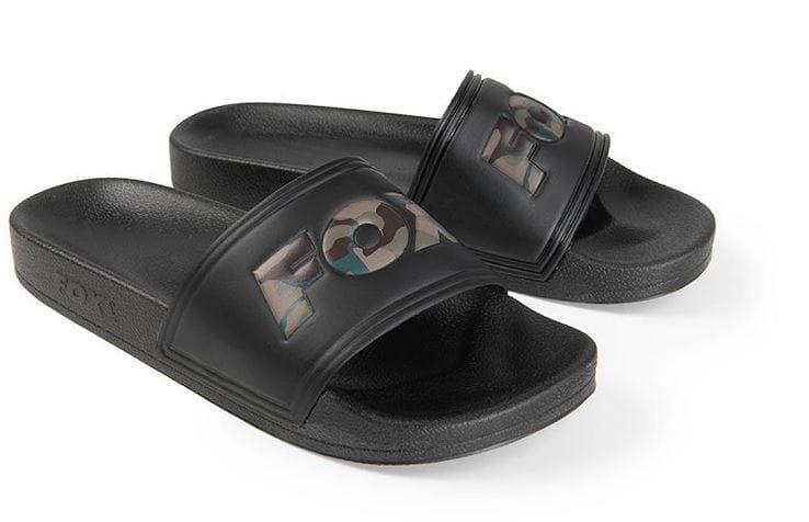KLAPKI WĘDKARSKIE FOX BLACK SLIDERS CAMO ROZ 46