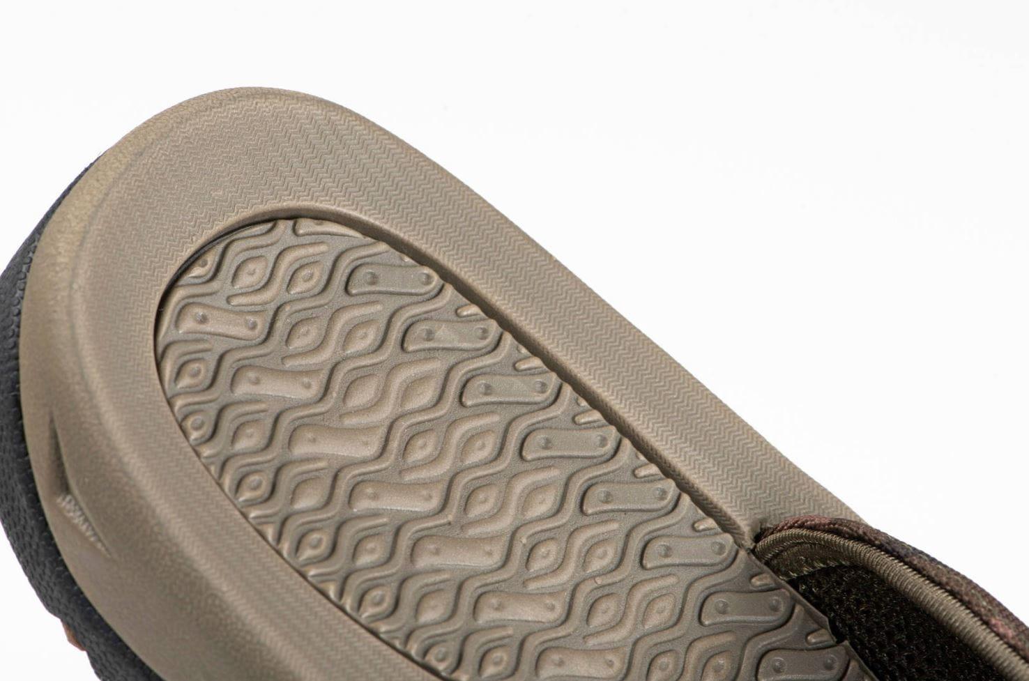 Wygodne obuwie typu "japonki", które przystosowane są do każdego rodzaju podłoża. Ich podeszwa wykonana jest z grubej warstwy syntetycznej, posiada odpowiednio wyprofilowaną warstwę oraz bieżnik zapobiegający poślizgom. Górny pasek posiada miękkie wykończenie, które nie powoduje podrażnień skóry stóp po dłuższym chodzeniu. Obuwie wykończone w kolorystyce khaki ze wstawkami kamuflażu Fox Camo.