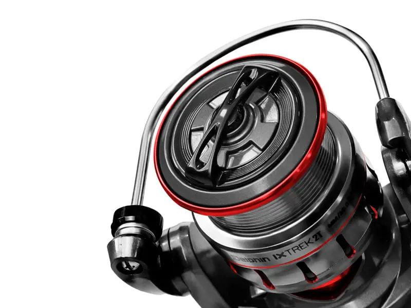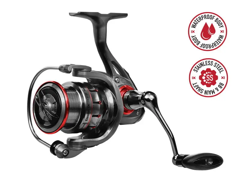 Ciemna powierzchnia z czerwonymi dodatkami sprawia, że jest naprawdę ekskluzywny pod względem wzornictwa. Sercem kołowrotka jest wypróbowany i przetestowany mechanizm z doskonale wyważonym rotorem, dzięki czemu jego użytkowanie jest bardzo płynne i bezproblemowe. Korpus wykonany jest z lekkiego materiału kompozytowego, który zapewnia dużą żywotność i doskonałą odporność na uszkodzenia mechaniczne.