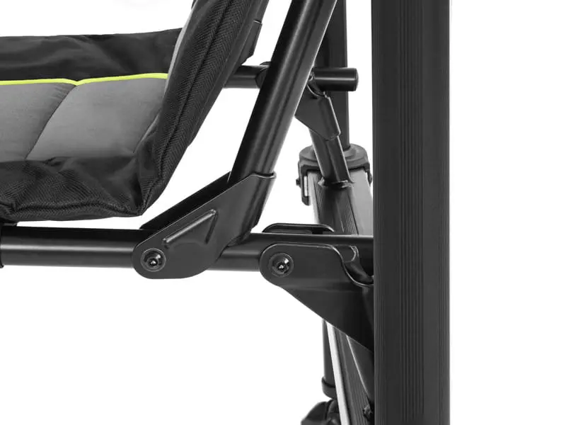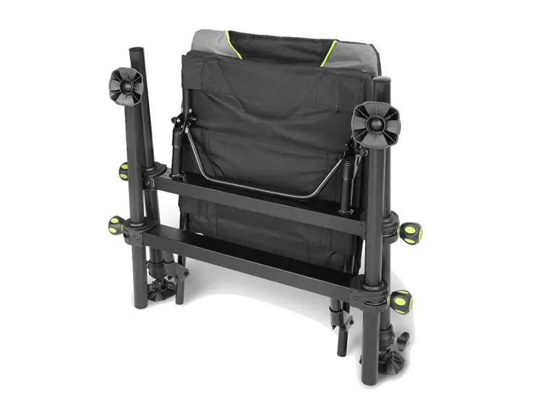 Krzesło jest kompatybilne z naszym ramieniem feederowym ProfixARM, ze stolikiem FlatWORX i innymi uchwytami o tej samej średnicy gwintu. Po zakończeniu łowienia nogi można wyciągnąć, a konstrukcję złożyć, aby była jak najbardziej kompaktowa, co ułatwia transport.
