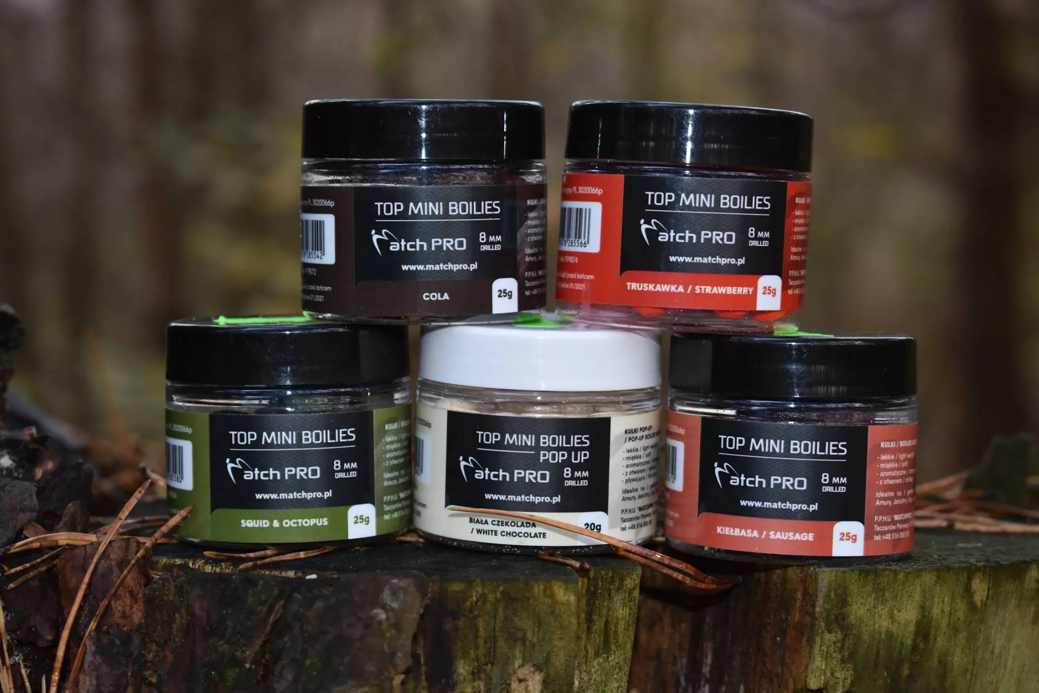 Seria najwyższej jakości przynęt w rozmiarze 8 mm. Długie i intensywne testy tych przynęt pozwoliły dopracować ich skład i właściwości tak aby były bardzo skuteczne w każdych warunkach. To co wyróżnia Matchpro Top Boiles to idealna miękkość, dzięki której ryby pewnie ją pobierają. Wyjątkowa lekkość kulki zapewnia bardzo naturalne zachowanie się w wodzie co niezwykle podnosi skuteczność łowienia. Top Matchpro Bolies są bardzo aromatyczne, oddając przez długi czas równomiernie aromat w wodzie co przekłada się na dużą ilość brań. Dodatkowo kulki posiadają otwór dzięki któremu bardzo łatwo i szybko można założyć przynętę. Różnorodność smaków i kolorów pozwala dopasować się każdemu wędkarzowi do aktualnych warunków panujących na łowisku.