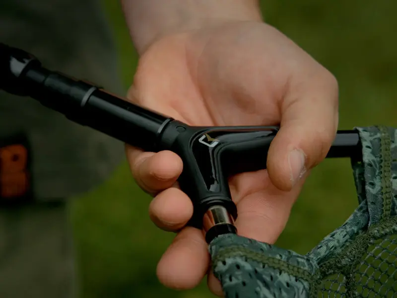 Kosz podbieraka składa się z dwóch teleskopowych ramion, które po wysunięciu blokują się pewnie w pozycji roboczej, więc nie musisz się martwić o ich przypadkowe wsunięcie. Teleskopowy system nie tylko znacznie zmniejsza długość transportową, ale również ułatwia wkładanie i wyjmowanie ramion z łącznika, co przekłada się na płynniejsze i szybsze operowanie – np. podczas przenoszenia ryby na matę do odhaczania.