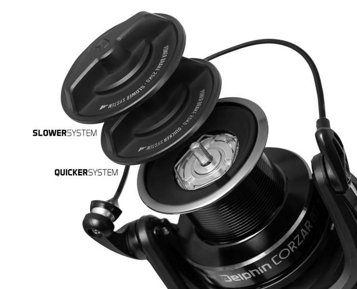 CORZAR jest wyposażony w tak zwany hamulec „power”, który ma siłę hamowania do 25 kg i który występuje w kołowrotkach w obu rozmiarach. Tak zwany „system Quicker” pozwala na jego całkowite dociągnięcie przy jednym obrocie, natomiast w systemie „Slower” regulacja hamulca podczas połowu ryby jest dużo płynniejsza i wolniejsza.