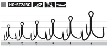 Superlekkie kotwiczki, które w doskonały sposób łączą dużą wytrzymałość z niewielką wagą. Wykonane z dużą starannością ze stali węglowej kutej Hi-Carbon w kolorze czarny nikiel. Ostrza proste z małym zadziorem pozwalającym utrzymać zdobycz podczas holu.