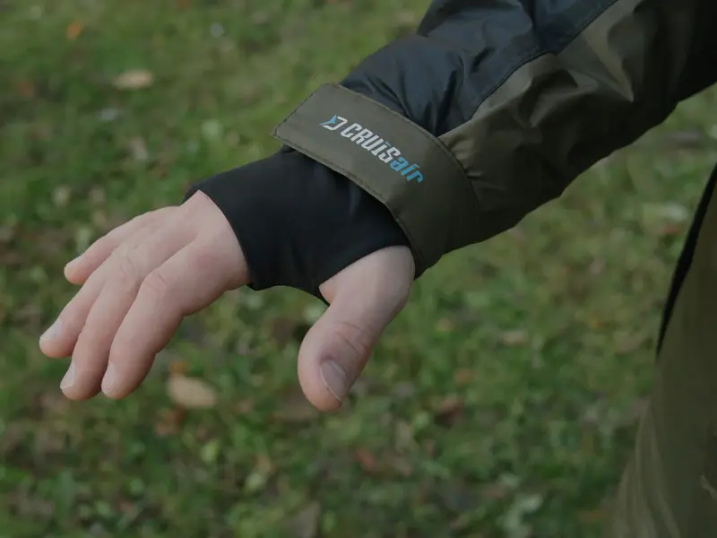 Rękawy zakończone są mankietami na rzep, a wewnętrzny rękaw z otworem na kciuk zwiększa ochronę przed chłodem i uniemożliwia przedostawanie się wiatru do środka.