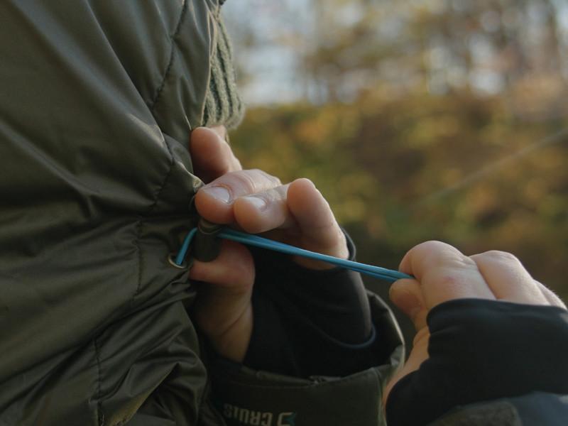 Kurtkę można zapinać za pomocą trwałego, dwukierunkowego zamka, osłoniętego od zewnątrz patką dla dodatkowej ochrony przed wiatrem i wodą. Dół kurtki wyposażono w regulowane ściągacze, które zatrzymują ciepło wewnątrz i minimalizują podmuchy wiatru. Oczywiście kurtka posiada kaptur, regulowany dwoma ściągaczami, z tyłu z rzepem umożliwiającym dopasowanie rozmiaru lub zawieszenie.
