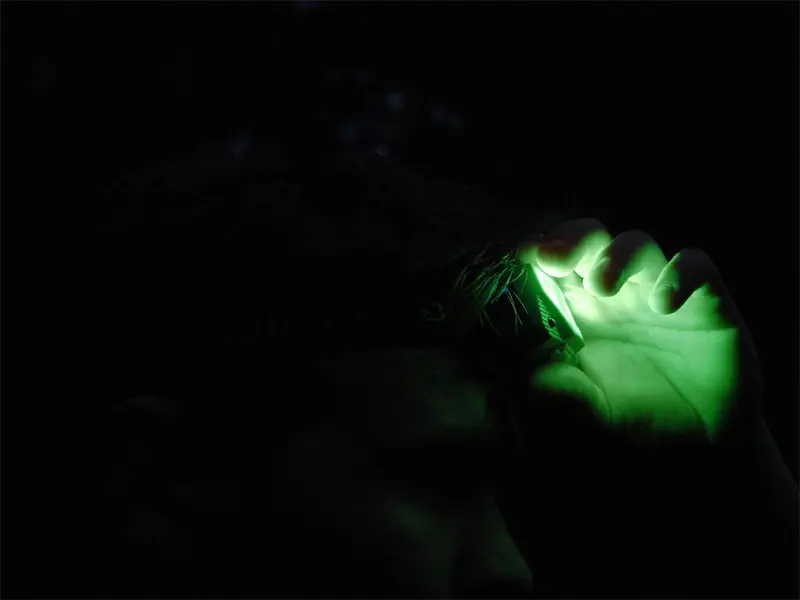 Tryb zielonego światła ma dużą zaletę przy podebraniu ryby – w przeciwieństwie do białego światła, minimalnie płoszy ryby i nie przyciąga owadów, co szczególnie latem bywa bardzo uciążliwe.