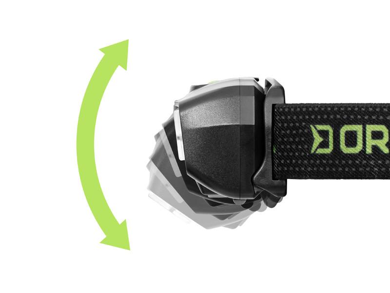 Dla maksymalnej wygody, czołówkę ORBIX można ustawić pod dowolnym kątem. Elastyczna i regulowana opaska na głowę zapewnia komfortowe dopasowanie.