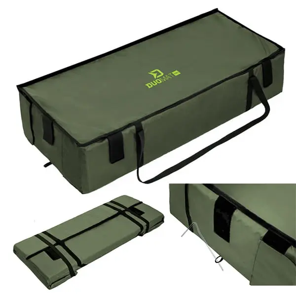 Nazwa DOUMAT oznacza, że matę można wykorzystać na dwa sposoby. Jako standardową matę bez krawędzi lub można te krawędzie podnieść i przymocować za pomocą rzepów, które znajdują się w każdym z rogów. Wypuszczając rybę, wystarczy odpiąć tylko jedną z krawędzi, aby ryba mogła swobodnie wyślizgnąć się z powrotem do wody. Mata posiada dwa gumowe paski przeznaczone do składania na czas transportu. W porównaniu z podstawowym Duomatem, ta wersja zawiera mocne tekstylne uchwyty, dzięki którym można przenosić matę .