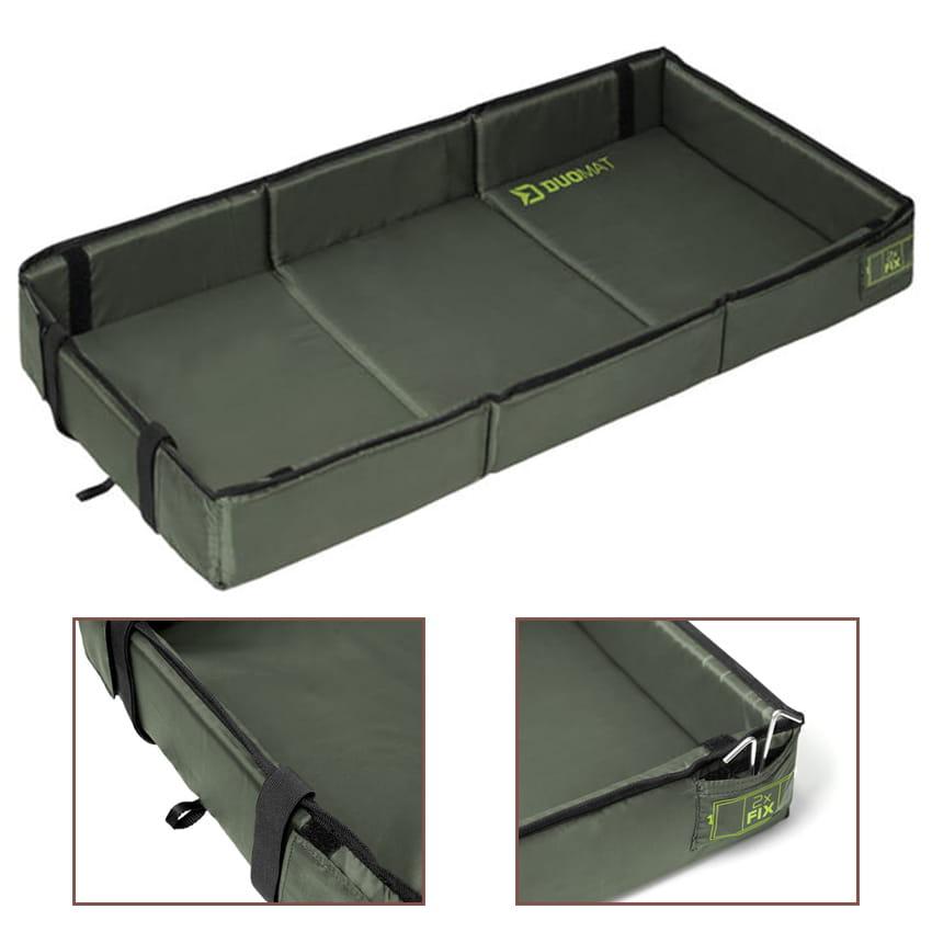 Delphin DUOMAT to właściwy wybór dla wędkarzy, którzy nie mają wystarczająco dużo miejsca, aby nosić dużą matę kołyskową. Mata ma grubą wyściółkę, która może chronić nawet największe karpie. Pianka zastosowana do jej wyściółki oferuje o około 30% większa gęstość niż w przypadku innych. Nie ma ryzyka obrażeń ryby, nawet na skalistej powierzchni. Wyróżnia się ona jakością wykonania i użytego materiału.