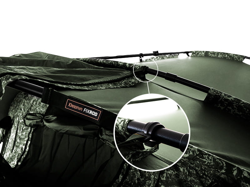Odpowiedni flagowiec w kategorii namiotów, tym razem w zielonym kolorze z ekskluzywnym opatentowanym kamuflażem C2G firmy Delphin. Namiot C-3 LUX C2G jest przeznaczony dla najbardziej wymagających wędkarzy. Wyjątkowo mocna konstrukcja stelażu z trzema pałąkami gwarantuje bezkompromisową stabilność w każdych warunkach pogodowych. Wraz z zastosowaną tkaniną najwyższej jakości i całkowicie podklejonymi szwami wytrzymuje również silne burze, wiatr i dużą ilość opadów. Niezaprzeczalnym atutem namiotu jest tkanina z popularnym wzorem CARPATH, która z pewnością zachwyci wszystkich fanów tego oryginalnego kamuflażu. Dzięki dużym wymiarom w namiocie bez problemu zmieści się 2 łóżka, pozostawiając jednocześnie w środku dużo miejsca na torby i inne elementy wyposażenia potrzebne do wygodnego pobytu nad wodą. W razie potrzeby wnętrze może pomieścić do 3 łóżek. Oczywiście są też dwa uchwyty do mocowania wędek, ale też duży daszek, który zapewnia ochronę przed słońcem czy deszczem. Wewnątrz dodatkowo 2 haczyki na suficie, na których można zawiesić np. lampę.