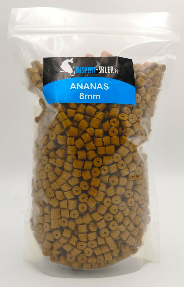 PELLET ZANĘTOWY / NA WŁOS PREMIUM ŚWIEŻY 1KG ZANĘTA NA RYBY - ANANAS 8MM - PRZEWIERCANY