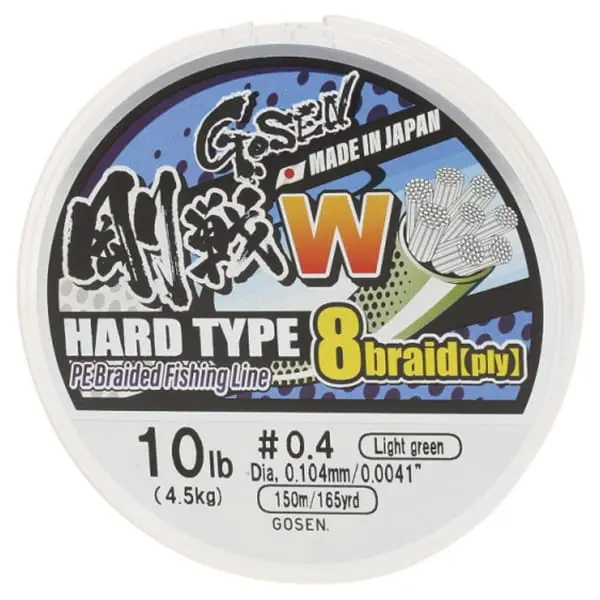 Obecnie na rynku wędkarskim popularne są plecionki wielosplotowe (x4, x8, x12 lub x16) natomiast GOSEN W HARD TYPE to wysokiej jakości japoński materiał jednosplotowy PE o wyjątkowej czułości, okrągłym kształcie, doskonałej wytrzymałości i wysokiej odporności na ścieranie. Produkt sprawdza się w każdych warunkach połowowych, sprawia, że jest łatwo zauważalny przez wędkarza, a dla ryb jest prawie niewidoczny.