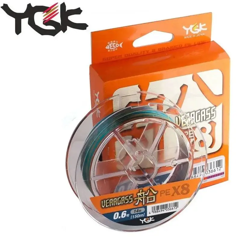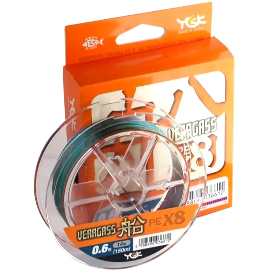 Ośmiosplotowa plecionka YGK Veragass PE X8 - wyprodukowana jest z tych samych włókien co Jig Man X8, ale na nowym poziomie technologicznym. Podobnie jak i inne modele firmy YGK (najbardziej znane: Upgrade i Super Jigman), nowa linia plecionek jest znacznie gęstsza i cieńsza od swojego prototypu. Producentowi udało się zwiększyć odporność nici na gwałtowne szarpnięcia – co stanowi bezprecedensowy atut przy współczesnych technikach spinningowych, oznaczających nierównomierne prowadzenie przynęty z lekkimi szarpnięciami (Twitching), czy też silne wyrzuty przynęt jigowych na maksymalnie cienkiej lince. Podobnie jak i prototyp, YGK VERAGASS PE X8 150M jest nierozciągliwa, bardzo odporna na ścieranie, idealnie okrągła w przekroju i bardzo śliska. Dostępna w niejaskrawych, ale bardzo kontrastujących kolorach (5 kolorów w 10- metrowych odcinkach, pozwala w łatwy i szybki sposób określić głębokość czy dystans przynęty od wędkarza), wysoka jakość barwy.
