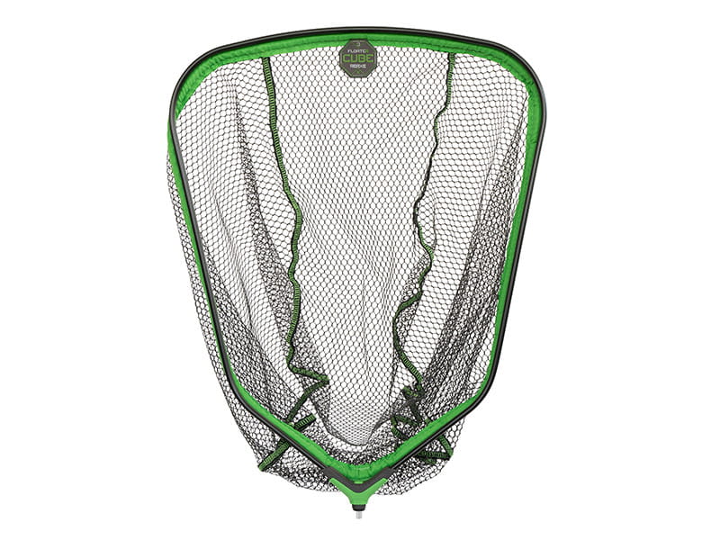 Pływający kosz o kwadratowym kształcie z serii REAXE z lekką, ale wytrzymałą czarną aluminiową ramą. Siatka podbieraka FloateR CUBE pokryta jest gumą, dzięki czemu nie chłonie wody i szybko schnie. Dodatkowo jest pokryta zieloną tkaniną na całej ramie od spodu, aby zwiększyć trwałość.