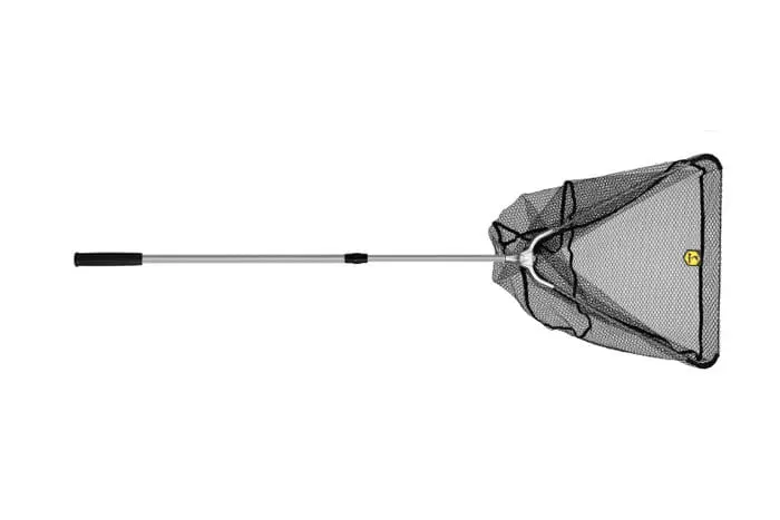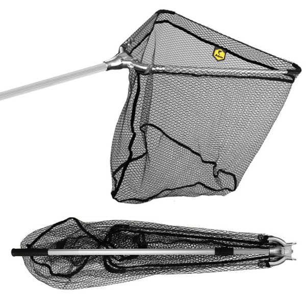 Metalowy środek jest centralnym punktem tego doskonale opracowanego, składanego podbieraka. Pomimo użycia dużej liczby części metalowych podbierak jest bardzo lekki, a manipulacja jego szczegółowo opracowanych częściami jest bardzo prosta. Podbierak jest wyposażony w siatkę bez powłoki gumowej.