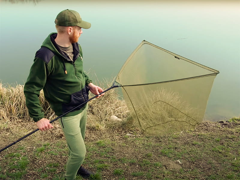 Jest lekki, wytrzymały, a mały rozmiar oczek oznacza, że jest delikatny dla ryb. Ramiona głowicy podbieraka są przymocowane do łącznika wykonanego z wytrzymałego, twardego tworzywa sztucznego. Łącznik ten umożliwia szybki montaż. Cały podbierak został zaprojektowany w eleganckiej kombinacji kolorystycznej zieleni i czerni, która wtapia się w otoczenie. Podczas projektowania tego produktu mieliśmy również na uwadze komfort użytkownika - obie części są pokryte antypoślizgową powierzchnią dla lepszego chwytu i manipulacji. Cienki uchwyt jest wykonany z włókna węglowego, co zapewnia wytrzymałość i lekkość.