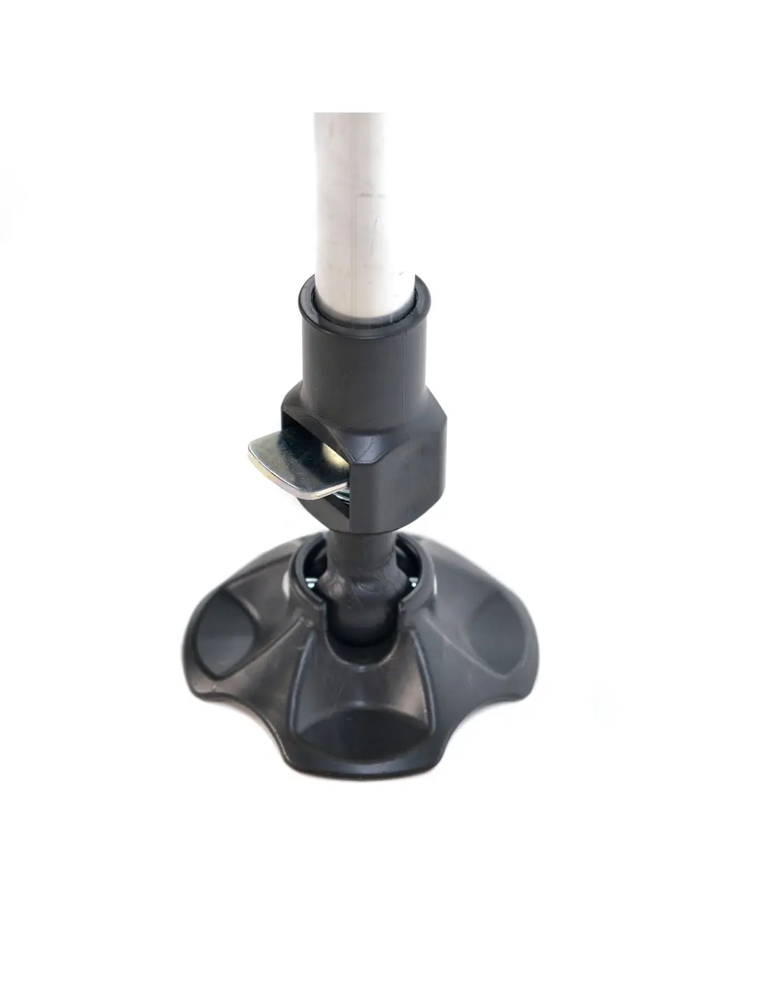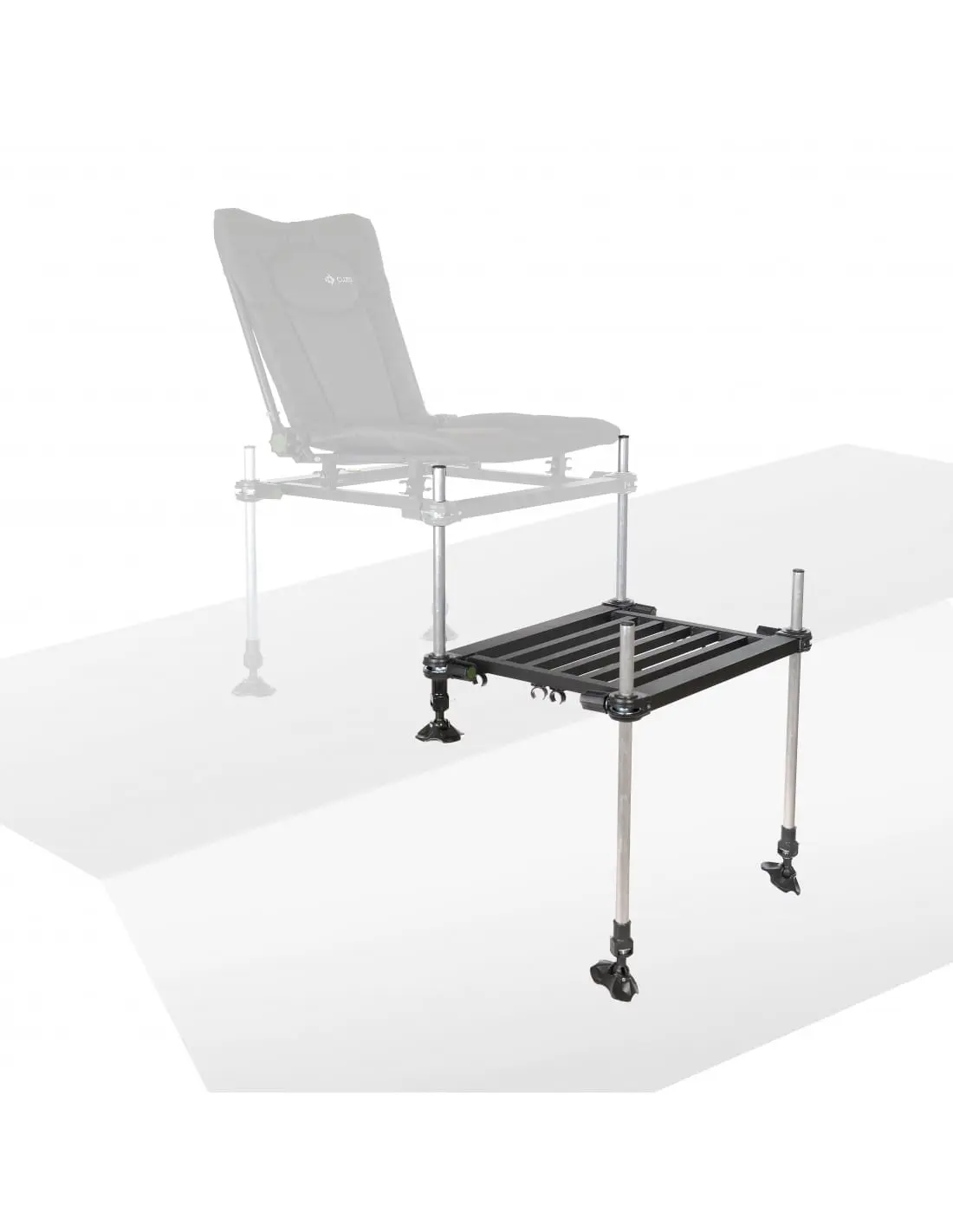 Podnóżek wyposażony jest w cztery teleskopowe nogi fi 25mm (o długości 69cm) oraz dwa łączniki, umożliwiające przymocowanie do CUZO F2, F3 oraz do dowolnego fotela/kosza. Nogi posiadają wkład o długości 25cm co zwiększa długość całkowitą do 99cm oraz stopkę o średnicy 10cm zapewniającą stabilne podparcie na nierównym podłożu. Na czas transportu zaczepiane są za pomocą czarnych uchwytów umiejscowionych pod platformą.