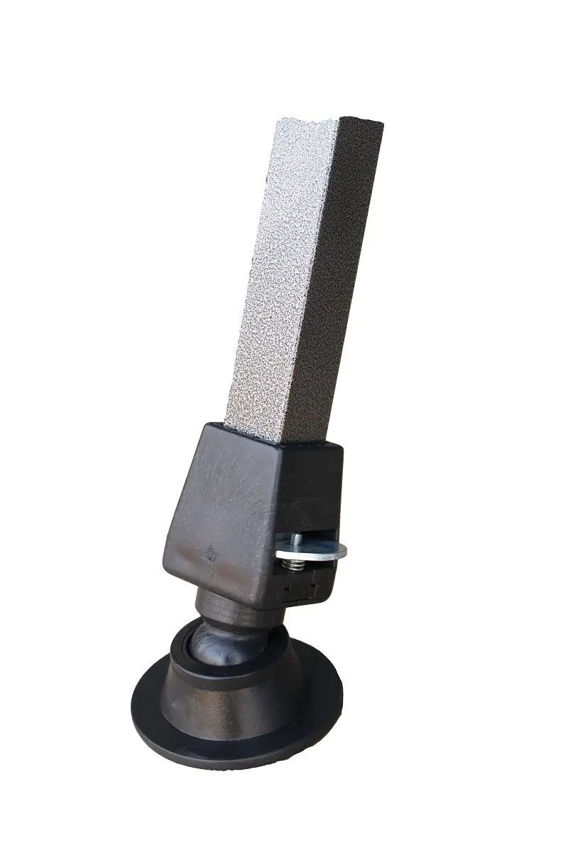 Posiada regulowane nóżki dzięki czemu można go osadzić na nierównym terenie.