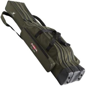 Uniwersalny pokrowiec 3-komorowy w kolorze zielony. Pokrowiec z usztywnionym dnem, co dodatkowo ochrania nasze wędki. Pokrowiec dobrze wykonany w bardzo niskiej cenie.