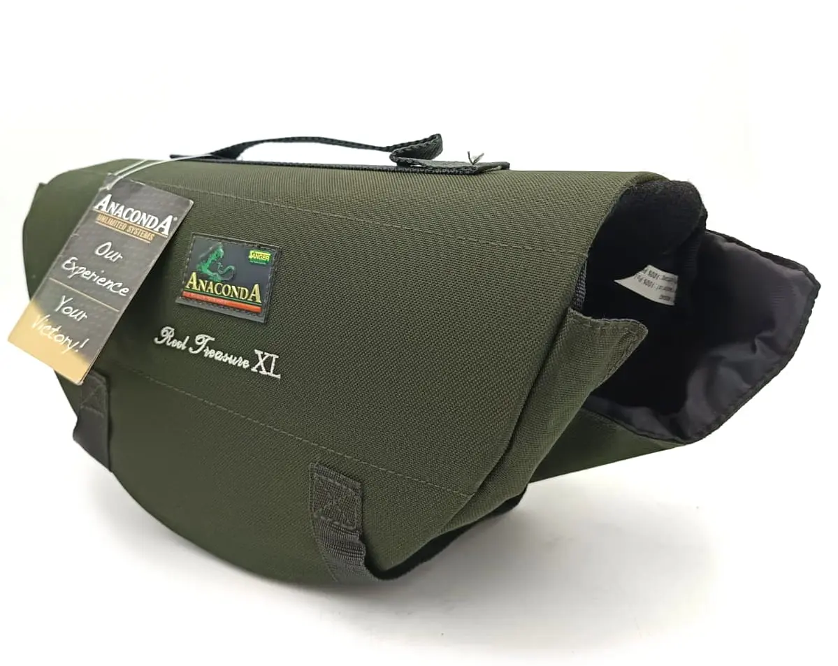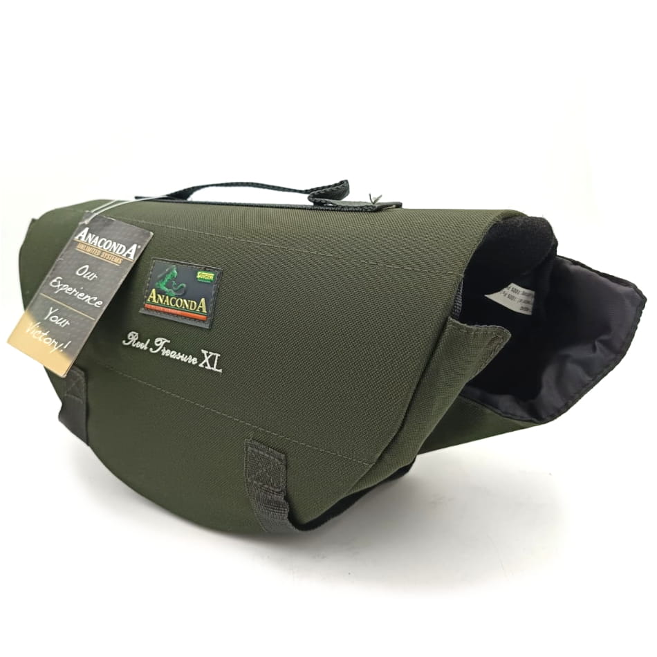 Wyściełany pokrowiec na kołowrotek w 2 rozmiarach. Posiada ogumowany rzep, który umożliwia zamocowanie go na blanku wędki.