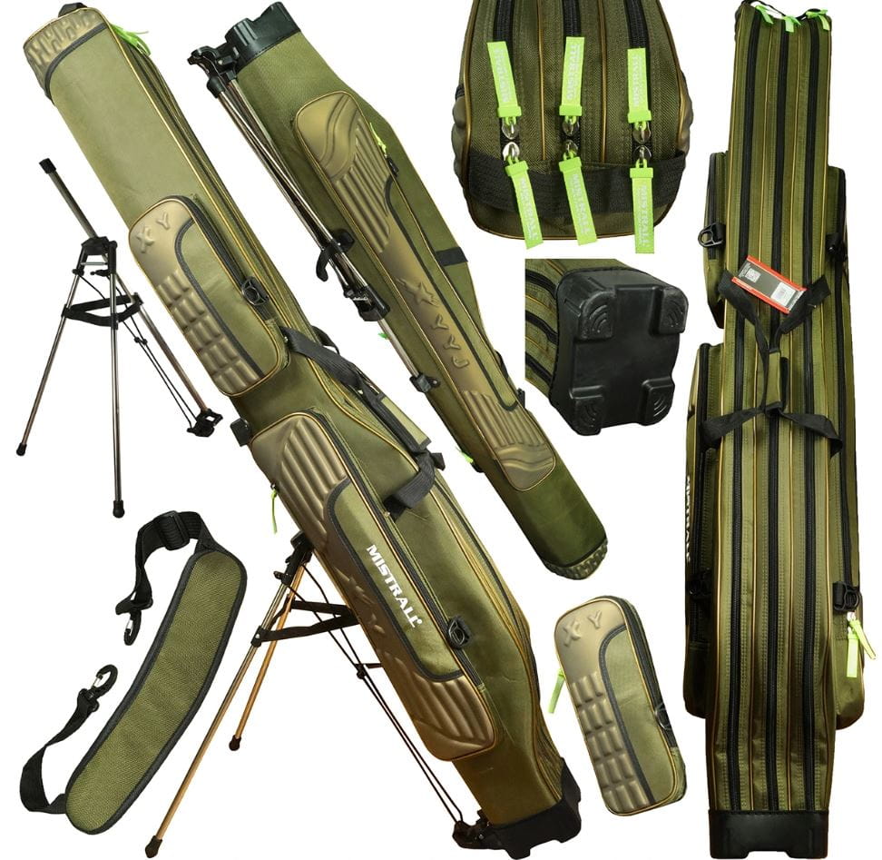 Usztywniane pokrowce na wędki posiadają sztywną konstrukcję wzmacniającą, co doskonale zabezpiecza wędki przed uszkodzeniem. Dodatkowo wyposażone w trzy boczne kieszenie na akcesoria. Pokrowiec ten dodatkowo posiada zabezpieczenie wędek w postaci ścian oddzielających komory wypełniony miękką pianką, dzięki czemu wędki nie będą narażone na obijanie się między sobą. Paski, które są odpinane pozwalają na wygodne noszenie pokrowca na plecach. Spód pokrowca wykonany z usztywnionego tworzywa. Specjalny stojak,nóżki mocowane do pleców umożliwiają postawienie pokrowca pionowo co chroni przed wilgocią i zabrudzeniem.