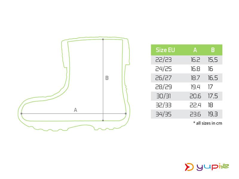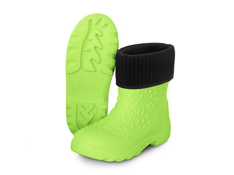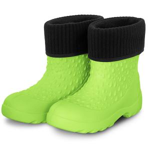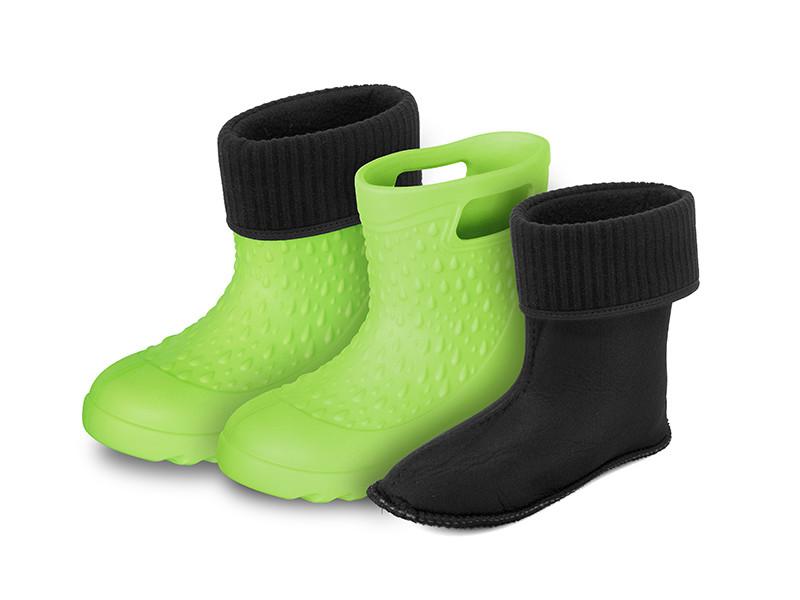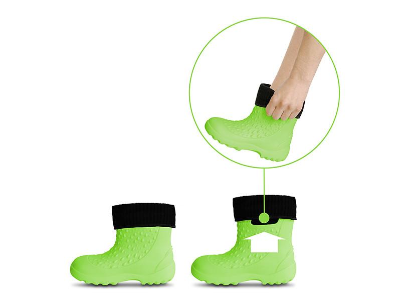 Ciepłą wkładkę można wyjąć, dzięki czemu buty nadają się na każdą porę roku. Wykonane są z pianki EVA zapewniającej miękkość i elastyczność. W górnej części znajdują się nacięcia, które ułatwiają zakładanie butów. Podeszwa ma świetną przyczepność, która zmniejsza ryzyko upadku na mokrym lub nierównym terenie. Te buty są dostępne w uniwersalnym zielonym kolorze i w wielu rozmiarach odpowiednich zarówno dla chłopców, jak i dziewcząt.