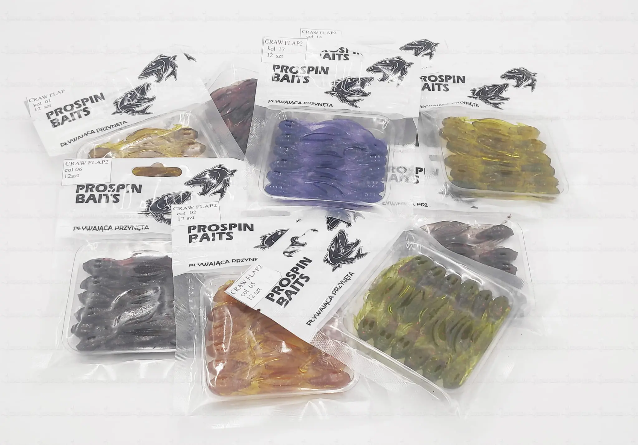 CRAW FLAP2 jest pierwszą przynętą imitującą chrząszcze w asortymencie PROSPIN BAITS. Guma ta idealnie nadaje się do metody Dropshot oraz do stosowania z główką jigową.