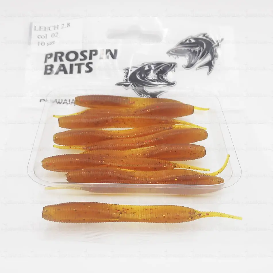 PROSPIN LEECH - Wierna imitacja pijawki czyli przysmaku dużych jazi, kleni i okoni. Nie pogardzi nią też szczupak. Pozostawiona w nurcie, szurana po dnie, delikatnie opadająca - każda forma prezentacji w tym wypadku jest właściwa i może sprowokować zaskakująco dużego drapieżnika.