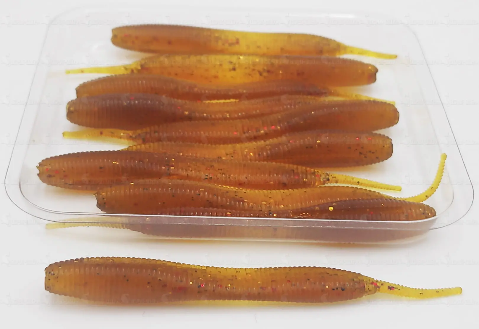 Przynęta nasączona atraktorem. Właśnie ten fakt oraz wykonanie z bardzo miękkiego silikonu sprawiają, że ryby nie chcą pozbyć się szybko przynęty PROSPINa, traktując ją jako naturalny pokarm...