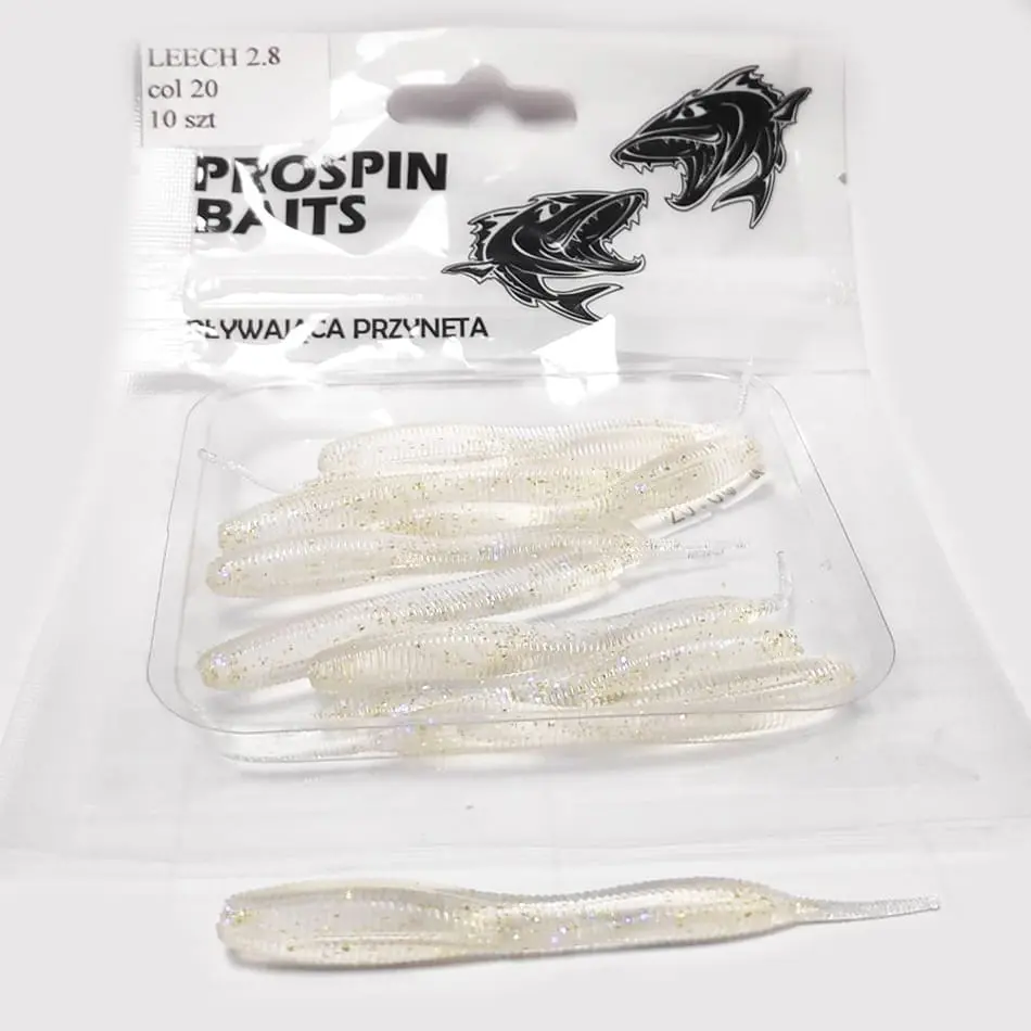 PROSPIN LEECH - Wierna imitacja pijawki czyli przysmaku dużych jazi, kleni i okoni. Nie pogardzi nią też szczupak. Pozostawiona w nurcie, szurana po dnie, delikatnie opadająca - każda forma prezentacji w tym wypadku jest właściwa i może sprowokować zaskakująco dużego drapieżnika.